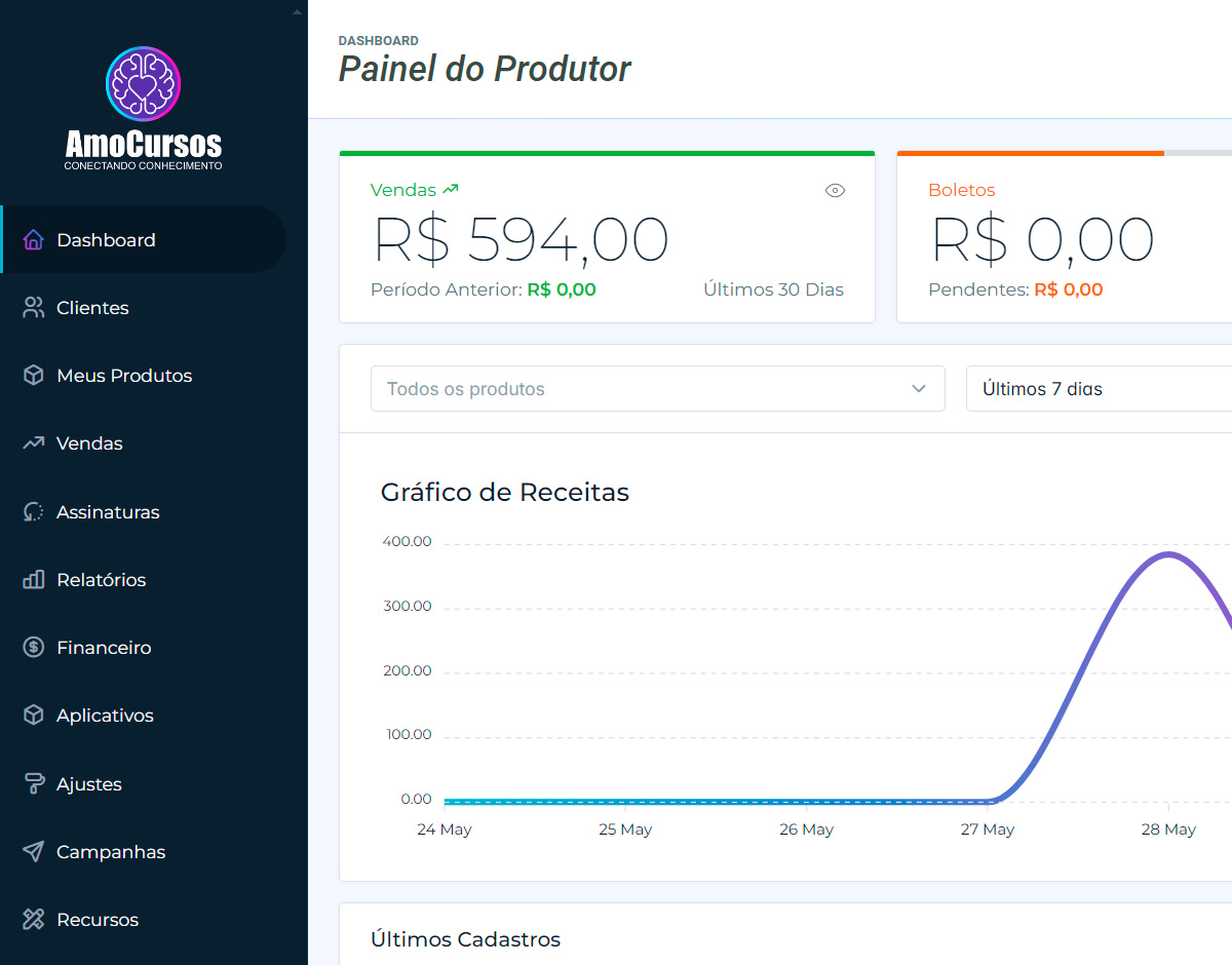 A AmoCursos é baseada nas maiores plataformas de Cursos da Internet. Foi desenvolvida para trazer facilidade administrativa e soluções focadas na venda e gestão dos conteúdos de infoprodutos. São recursos surpreendentes, e nosso time de desenvolvimento continua trabalhando incansavelmente nas atualizações de novas ferramentas. Recursos e um excelente atendimento não faltam aos produtores que estão na AmoCursos.